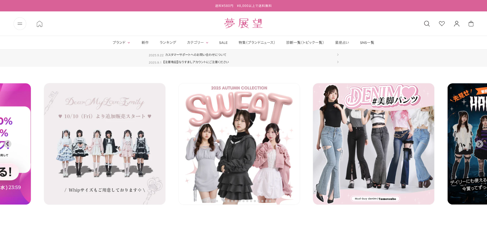 「夢展望」はガーリー系からセクシー系まで幅広いテイストを扱っている通販サイトです。