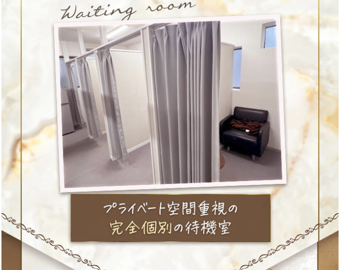 当店では、キャスト様のプライバシーを第一に考え、「完全個室」の待機室を完備しています。