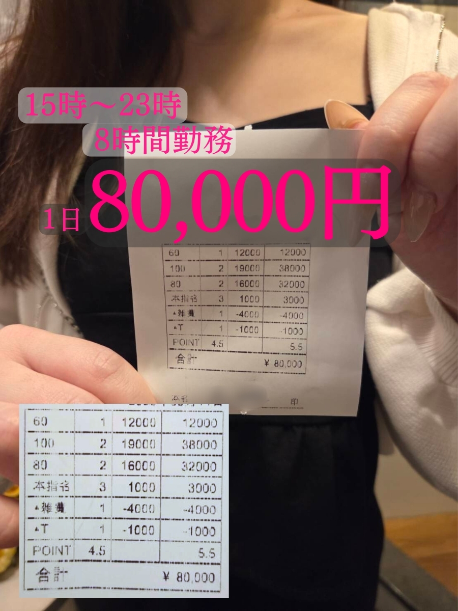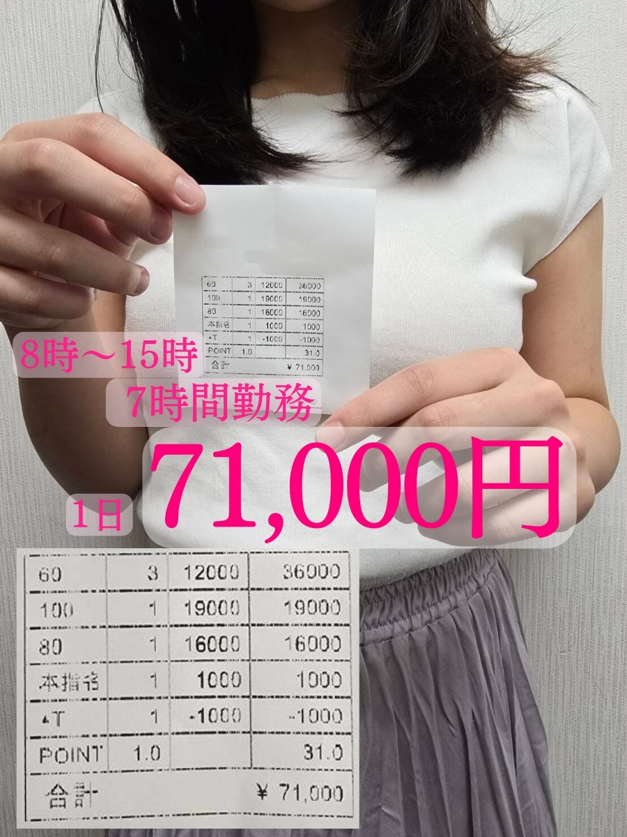 勤務時間 | 「営業時間」6時~24時(最終受付23時) ご自由に勤務時間をお決めいただけます! 送迎車利用も【無料】です! |