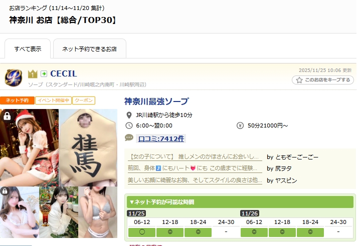 各店のランキングがのっておりお客様はそこみてお店選びをしています。