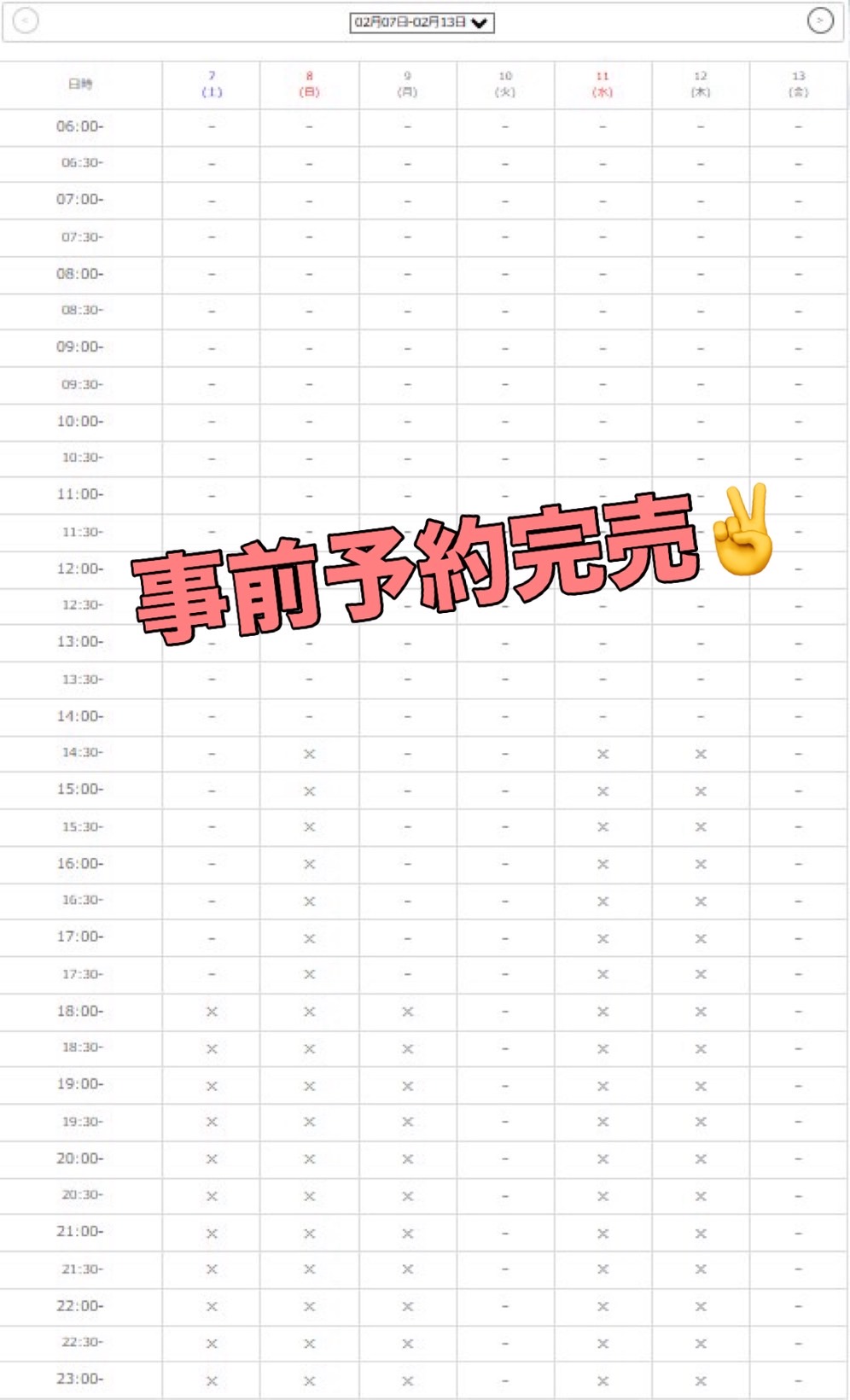 こちらは入店から数日しか経過していない新人さんの予約状況です。