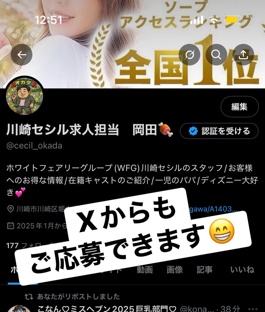 @cecil_okada 👈川崎セシル求人担当 岡田のアカウントです!