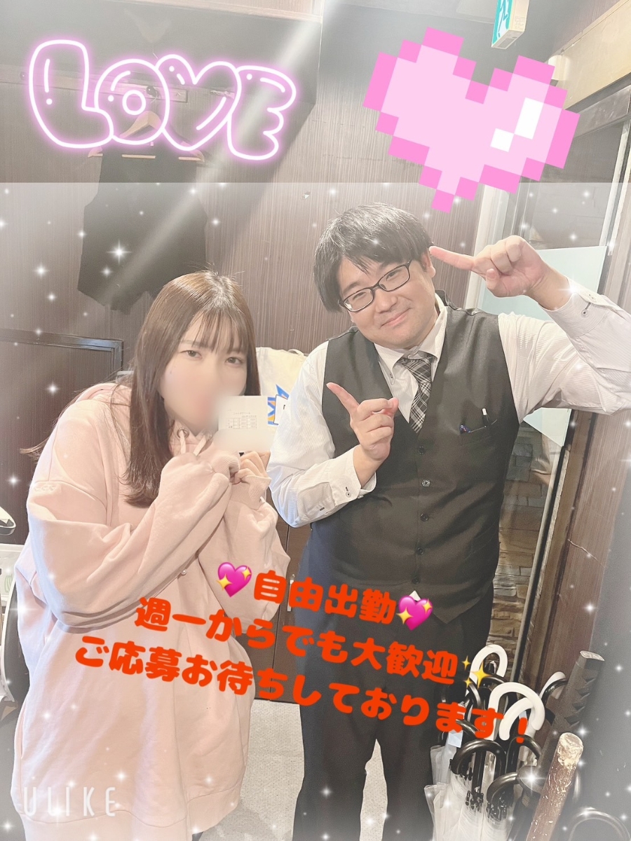 勤務日 | ★完全自由出勤★ 在籍費やノルマ、罰金などは一切ありません! 月に1、2回の出勤でもOK! お仕事前やお仕事後の短時間のみの出勤も大歓迎です! ご自身のご予定や体調に合わせた無理のないシフトで働いていただけたらと思います💛 |