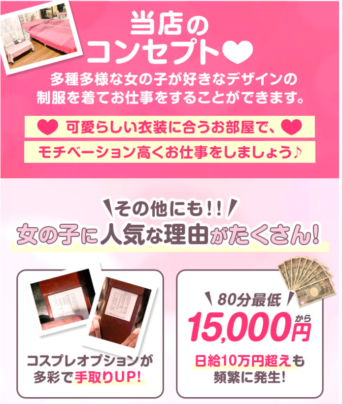 女の子が大好きな可愛い衣装を着てお仕事ができるから、