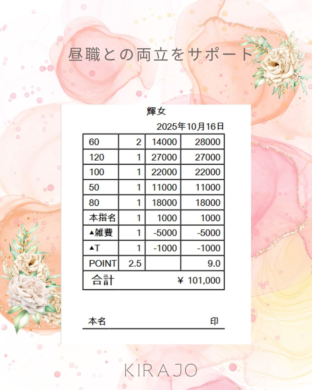 昼はOLさん、夜は輝女でお仕事されているキャストさんの中には、