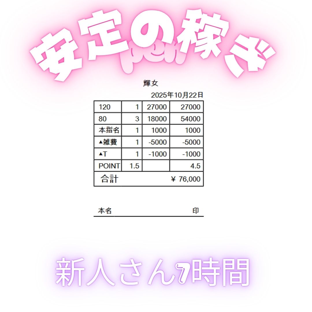 それでも7時間のご勤務で76,000円という見事な稼ぎを実現し、なんとこの日も全枠完売でした👏✨