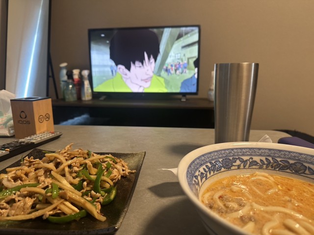 本日はラスリゾ店長が作る最高の坦々うどんと青椒肉絲!🍜🥢